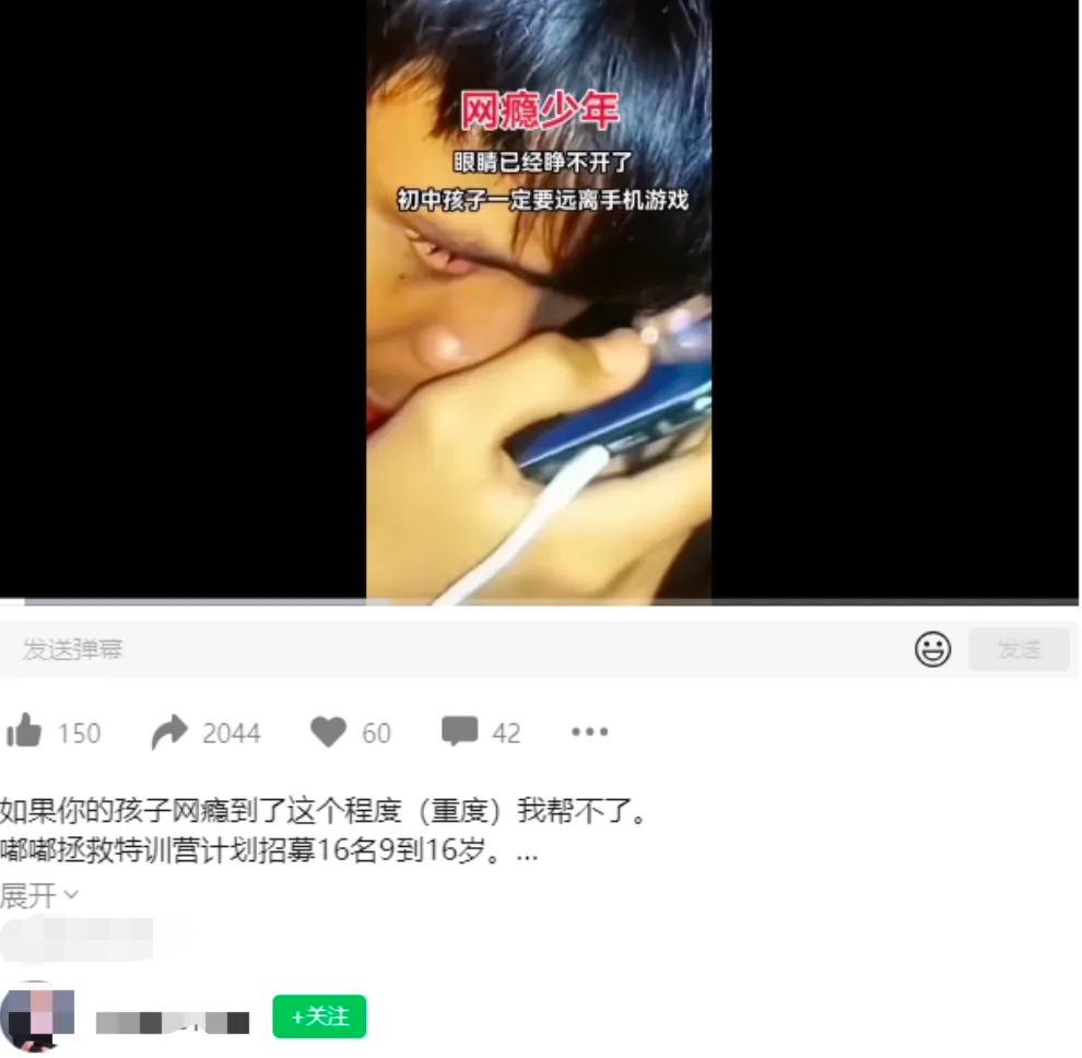 自詡“教育專家”“特訓(xùn)教官”的網(wǎng)紅博主們,用同樣的話術(shù),歇斯底里地控訴游戲,呼吁國家全面禁止游戲,刻意炮制萬千家長們希望孩子戒掉網(wǎng)癮、遠(yuǎn)離游戲沉迷的焦慮,贏得了不少家長的點(diǎn)贊和轉(zhuǎn)發(fā),當(dāng)然,還有消費(fèi);他們販賣的新型“戒網(wǎng)癮學(xué)?!薄笆罴偬赜?xùn)營”“課程”動輒幾萬元,這些機(jī)構(gòu)提出的希望令家長們無法拒絕——“還您一個好孩子”。
