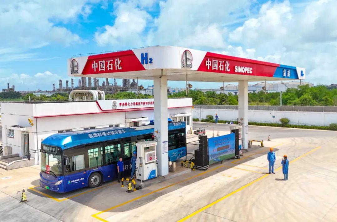 2025年7月23日,山東青島,一輛公交車在加注燃料電池氫。近日,中國一企業(yè)向社會車輛充裝加注燃料電池氫突破1000噸,為區(qū)域綠色交通發(fā)展注入強勁動能。中新社發(fā) 張進剛 攝