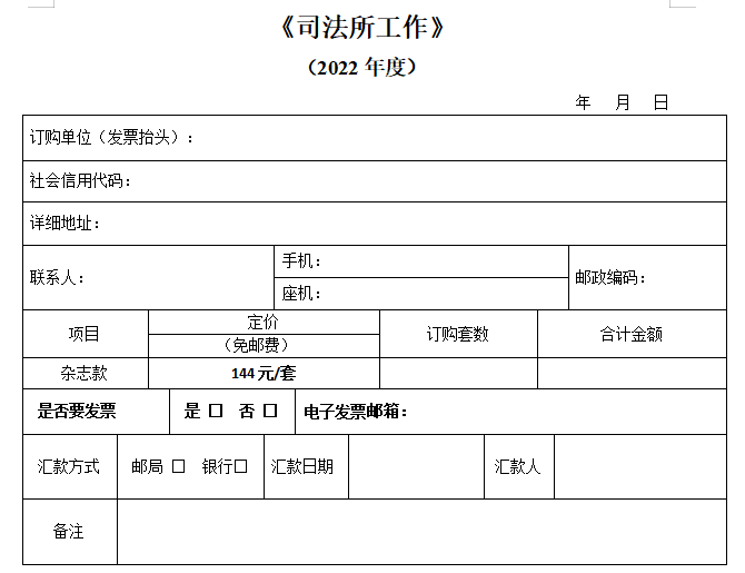 單位匯款時請務必標明“司法所工作+訂購套數”,個人匯款請務必注明“單位名稱+中國司法”。