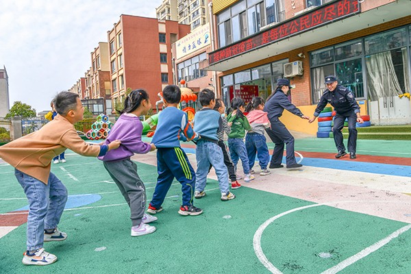 近年來(lái),公安機(jī)關(guān)已選派30余萬(wàn)名業(yè)務(wù)能力強(qiáng)、經(jīng)驗(yàn)豐富的公安民警兼任法治副校長(zhǎng),深入學(xué)校組織開(kāi)展形式多樣的安全教育活動(dòng)。圖為安徽省涇縣公安局開(kāi)發(fā)區(qū)派出所民警開(kāi)展法治副校長(zhǎng)進(jìn)校園活動(dòng)。 潘涯磊 攝