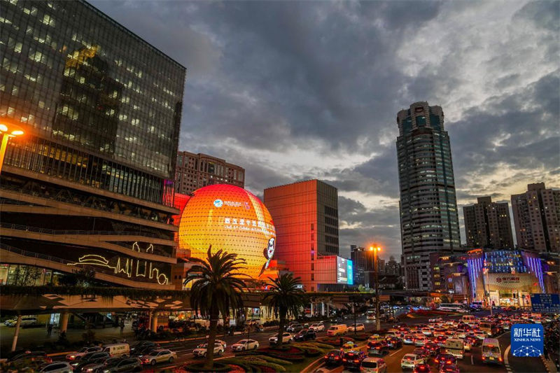 2022年11月4日傍晚拍攝的上海徐家匯商圈。新華社記者 丁汀 攝