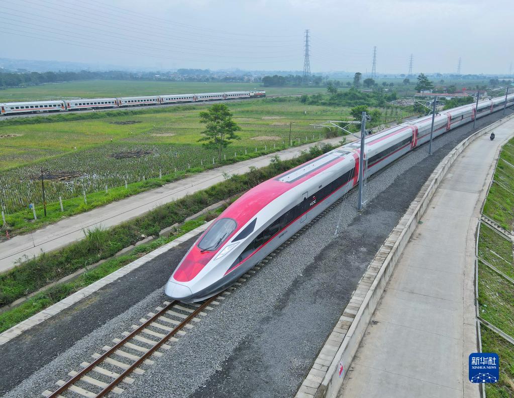 11月9日,印尼萬隆德卡魯爾車站。一輛帶有寶石紅涂色的高鐵列車緩緩啟動,標志著雅萬高鐵試驗段接觸網(wǎng)熱滑試驗全面展開。雅萬高鐵項目自2016年正式啟動以來,在兩國元首關(guān)心下順利推進,已成為共建“一帶一路”的標志性項目。項目建成后,雅加達到萬隆的旅行時間將由現(xiàn)在的3個多小時縮短至40分鐘。