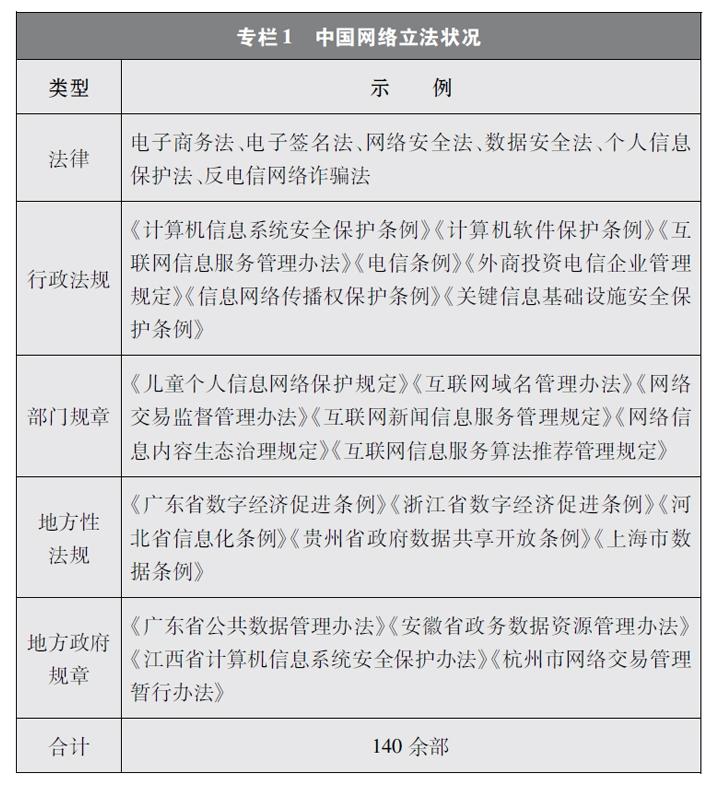 中國網(wǎng)絡(luò)立法隨著互聯(lián)網(wǎng)發(fā)展經(jīng)歷了從無到有、從少到多、由點到面、由面到體的發(fā)展過程。第一階段從1994年至1999年,是接入互聯(lián)網(wǎng)階段。上網(wǎng)用戶和設(shè)備數(shù)量穩(wěn)步增加。這一階段網(wǎng)絡(luò)立法主要聚焦于網(wǎng)絡(luò)基礎(chǔ)設(shè)施安全,即計算機(jī)系統(tǒng)安全和聯(lián)網(wǎng)安全。第二階段從2000年至2011年,是PC互聯(lián)網(wǎng)階段。隨著計算機(jī)數(shù)量逐步增加、上網(wǎng)資費逐步降低,用戶上網(wǎng)日益普遍,網(wǎng)絡(luò)信息服務(wù)迅猛發(fā)展。這一階段網(wǎng)絡(luò)立法轉(zhuǎn)向側(cè)重網(wǎng)絡(luò)服務(wù)管理和內(nèi)容管理。第三階段從2012年至今,是移動互聯(lián)網(wǎng)階段。這一階段網(wǎng)絡(luò)立法逐步趨向全面涵蓋網(wǎng)絡(luò)信息服務(wù)、信息化發(fā)展、網(wǎng)絡(luò)安全保護(hù)等在內(nèi)的網(wǎng)絡(luò)綜合治理。在這一進(jìn)程中,中國制定出臺網(wǎng)絡(luò)領(lǐng)域立法140余部,基本形成了以憲法為根本,以法律、行政法規(guī)、部門規(guī)章和地方性法規(guī)、地方政府規(guī)章為依托,以傳統(tǒng)立法為基礎(chǔ),以網(wǎng)絡(luò)內(nèi)容建設(shè)與管理、網(wǎng)絡(luò)安全和信息化等網(wǎng)絡(luò)專門立法為主干的網(wǎng)絡(luò)法律體系,為網(wǎng)絡(luò)強國建設(shè)提供了堅實的制度保障。