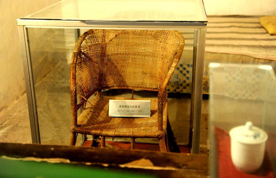 這是在河南省蘭考縣焦裕祿同志紀念館內(nèi)拍攝的焦裕祿曾用過的藤椅(2014年5月5日攝)。新華社記者 朱祥 攝