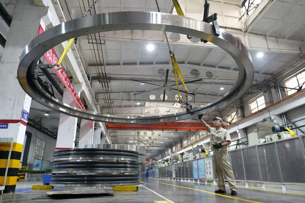 2025年5月22日,工人在位于河南洛陽的洛軸集團(tuán)風(fēng)電三車間生產(chǎn)線上作業(yè)。新華社記者 李嘉南 攝