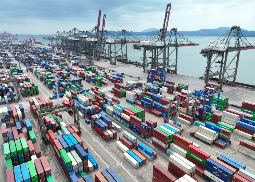 這是2024年10月15日拍攝的中國(福建)自由貿(mào)易試驗區(qū)廈門片區(qū)集裝箱碼頭(無人機照片)。新華社記者 姜克紅 攝