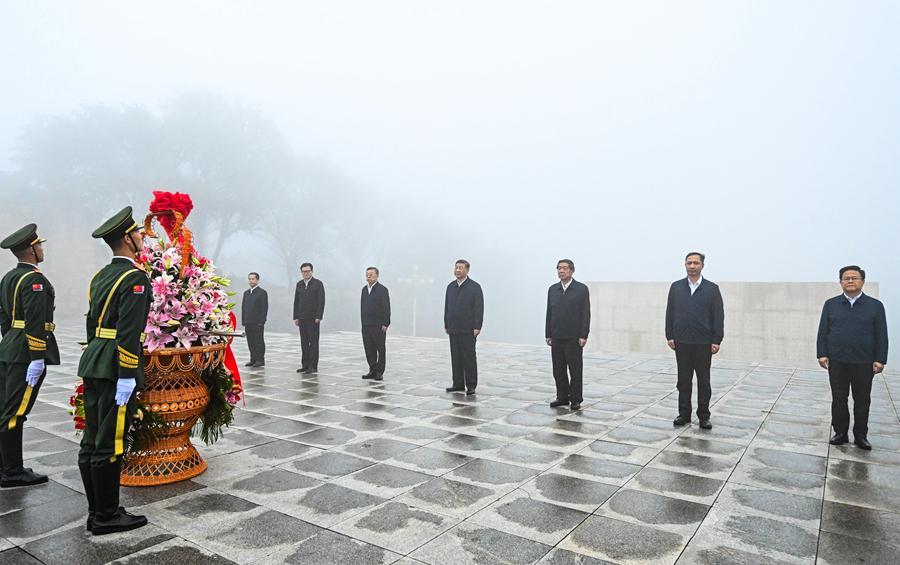??7月7日至8日,中共中央總書記、國家主席、中央軍委主席習(xí)近平在山西考察。這是7日下午,習(xí)近平在位于陽泉市獅腦山的百團(tuán)大戰(zhàn)紀(jì)念碑廣場,向八路軍烈士敬獻(xiàn)花籃。新華社記者 謝環(huán)馳 攝