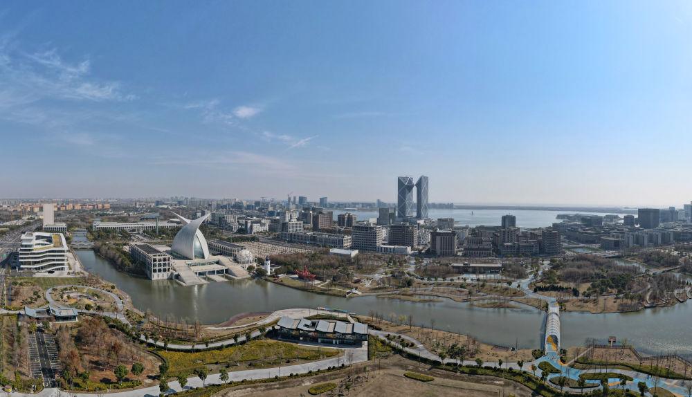 這是2025年3月19日拍攝的上海自貿試驗區(qū)臨港新片區(qū)滴水湖畔景色(無人機照片)。新華社記者 方喆 攝