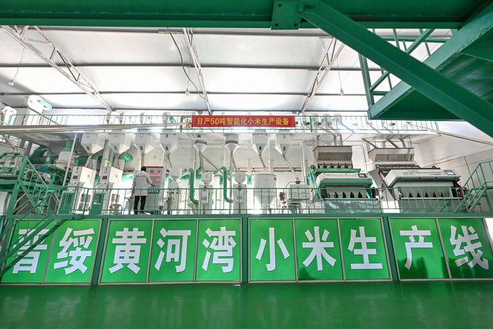 2025年7月1日拍攝的山西省呂梁市興縣晉綏黃河灣農(nóng)業(yè)開發(fā)有限公司的小米生產(chǎn)線??箲?zhàn)時期,地處晉西北地區(qū)的興縣和靜樂縣是晉綏抗日根據(jù)地的一部分。新華社記者 李鑫 攝