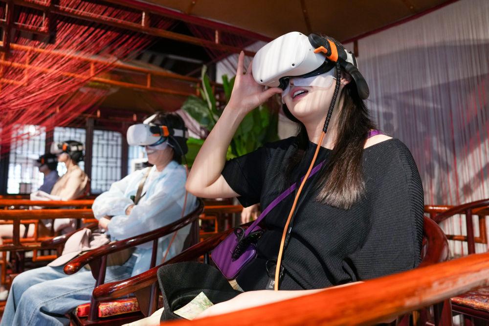 2025年5月18日,游客在江蘇蘇州拙政園體驗(yàn)VR漫游。近年來(lái),蘇州不斷推進(jìn)“數(shù)字園林”建設(shè),在園林整體數(shù)字建模、園林要素?cái)?shù)據(jù)庫(kù)建設(shè)等方面開(kāi)展探索,利用數(shù)字技術(shù)創(chuàng)造“數(shù)字云游”VR場(chǎng)景,打造“云游拙政園”“獅林園宇宙”“留園虛擬元宇宙”等項(xiàng)目,營(yíng)造真實(shí)可感的虛擬空間,讓觀眾沉浸式感受蘇州園林的獨(dú)特魅力。