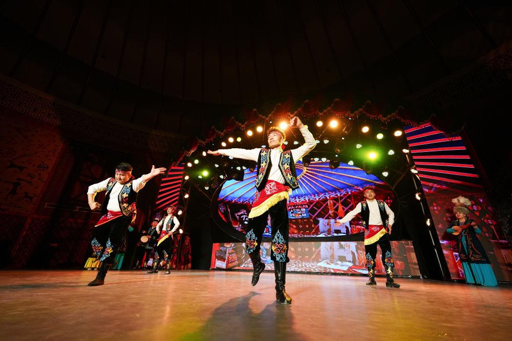 2025年5月1日,《新疆維吾爾自治區(qū)瑪納斯非物質(zhì)文化遺產(chǎn)保護(hù)條例》正式實(shí)施,為保護(hù)這部列入聯(lián)合國(guó)教科文組織非遺名錄的柯?tīng)柨俗巫逵⑿凼吩?shī)提供了法規(guī)遵循。這是2025年4月22日,演員在位于新疆阿圖什市的瑪納斯史詩(shī)大劇院為游客表演。