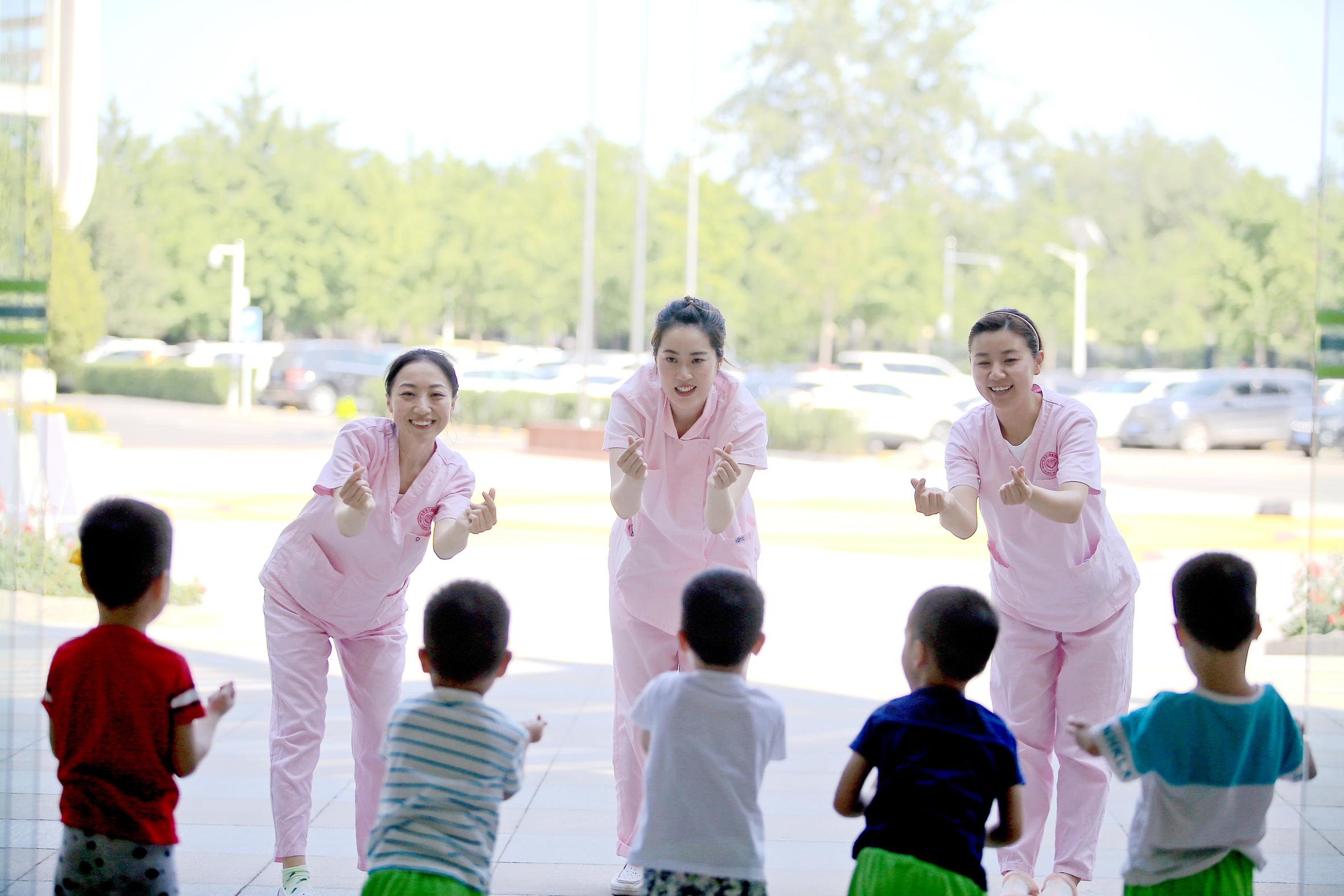 圖為北京兒童福利院護理人員陪伴孩子們做游戲。