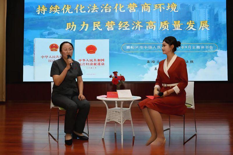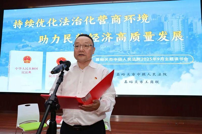 近日,甘肅省嘉峪關(guān)市中級(jí)人民法院聯(lián)合市工商聯(lián)共同舉辦“持續(xù)優(yōu)化法治化營(yíng)商環(huán)境 助力民營(yíng)經(jīng)濟(jì)高質(zhì)量發(fā)展”主題讀書會(huì)。市中級(jí)人民法院黨組書記、代院長(zhǎng)范勰出席活動(dòng)并致辭,市工商聯(lián)黨組書記、常務(wù)副主席吳壽先作點(diǎn)評(píng)發(fā)言。民營(yíng)企業(yè)家張毅、王廣里、王貴龍、邱學(xué)鋒、劉忠孝、冉平全、李國(guó)紅、馬曉飛、朱紀(jì)才、劉成庭受邀參加讀書會(huì)。