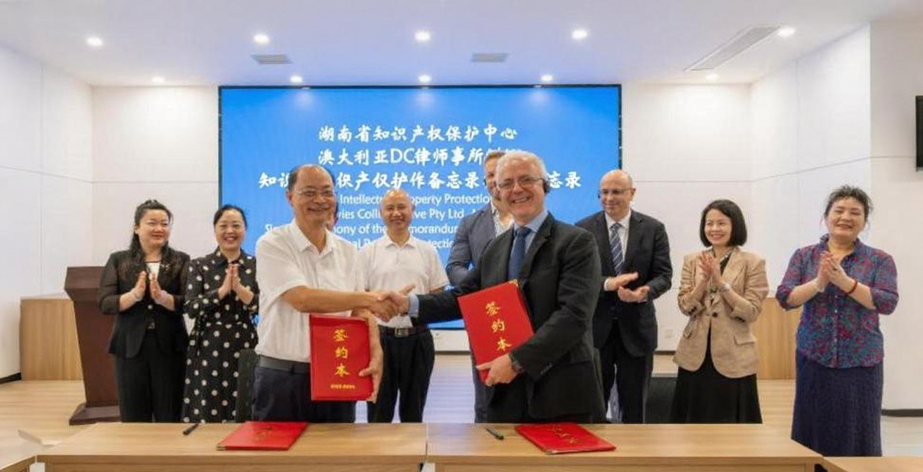 9月2日,湖南省知識產(chǎn)權(quán)保護中心、長沙知識產(chǎn)權(quán)保護中心與澳大利亞DCC律師事務所簽訂知識產(chǎn)權(quán)保護合作備忘錄,并聯(lián)合開展涉外知識產(chǎn)權(quán)保護交流分享活動。湖南省市場監(jiān)督管理局(知識產(chǎn)權(quán)局)二級巡視員何愛文出席活動。