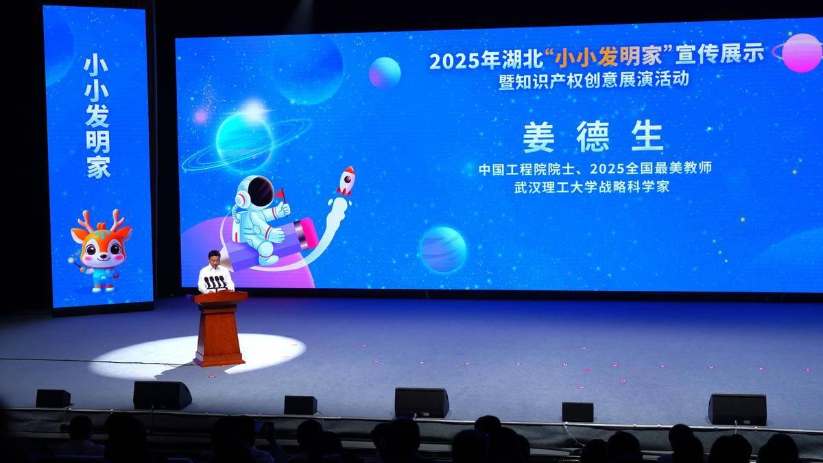 “小手拉大手,創(chuàng)新一起走?!?月23日下午,為大力激發(fā)廣大青少年尊重知識、崇尚創(chuàng)新意識,構(gòu)建覆蓋全省中小學生的科技創(chuàng)新活動平臺,由湖北省知識產(chǎn)權(quán)局主辦、湖北省發(fā)明協(xié)會與極目新聞承辦的2025年湖北“小小發(fā)明家”宣傳展示暨知識產(chǎn)權(quán)創(chuàng)意展演活動在東湖之濱圓滿舉行。中國工程院院士、2025年全國最美教師、武漢理工大學戰(zhàn)略科學家姜德生教授出席活動并為青少年開講。