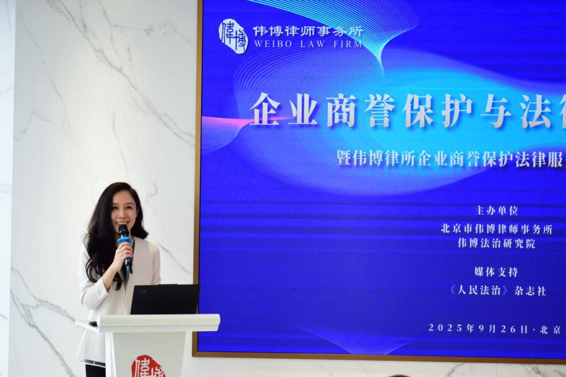新媒體與AI技術深度融合的當下,虛假評論刷屏、AI謠言擴散、競品惡意抹黑等不法行為正成為企業(yè)商譽的新威脅,傳統(tǒng)保護手段漸顯乏力,律師對該領域的法律服務也亟待從“事后補救”轉向“全鏈條防控”。在此背景下,北京市偉博律師事務所(以下簡稱“偉博律所”)、偉博法治研究院于2025年9月26日在北京舉辦企業(yè)商譽保護與法律實務沙龍,并發(fā)布偉博律所企業(yè)商譽保護法律服務產品。