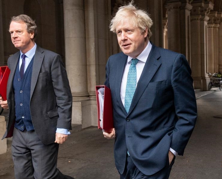 12月15日,在英國倫敦,英國首相鮑里斯·約翰遜(左二)參加完內(nèi)閣會(huì)議后返回首相府。