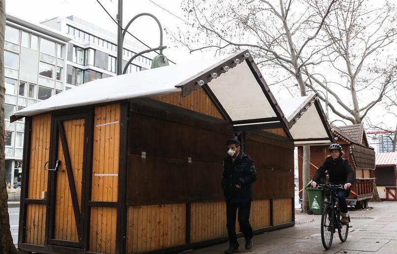 12月16日,在德國首都柏林,行人經(jīng)過關(guān)閉的“圣誕木屋”。 德國聯(lián)邦與各州政府13日商定,鑒于該國新增新冠確診病例數(shù)和死亡病例數(shù)居高不下,將從16日起進(jìn)一步收緊疫情防控措施直至明年1月10日。 新華社記者 單宇琦 攝