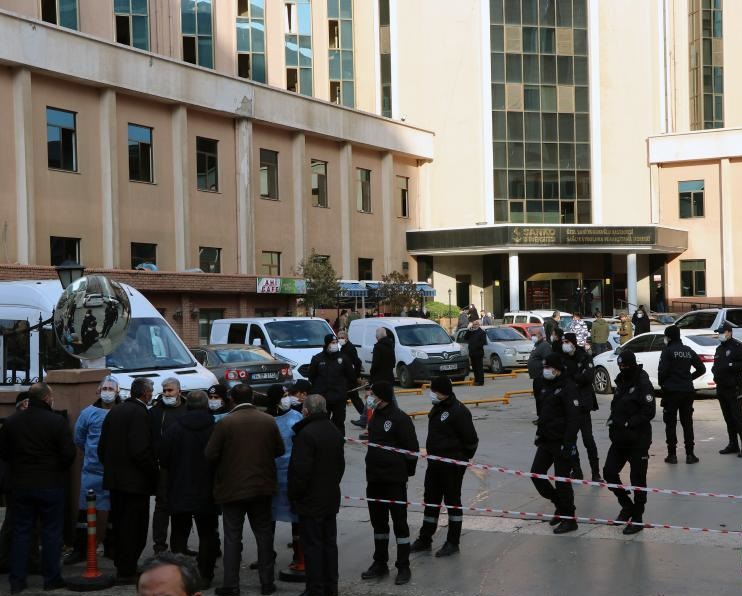 12月19日,在土耳其東南部加濟安泰普省,警察在發(fā)生火災(zāi)的私立醫(yī)院外警戒。