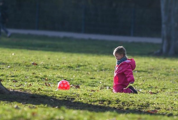 1月10日,在德國(guó)法蘭克福,一名孩子在戶外玩耍。