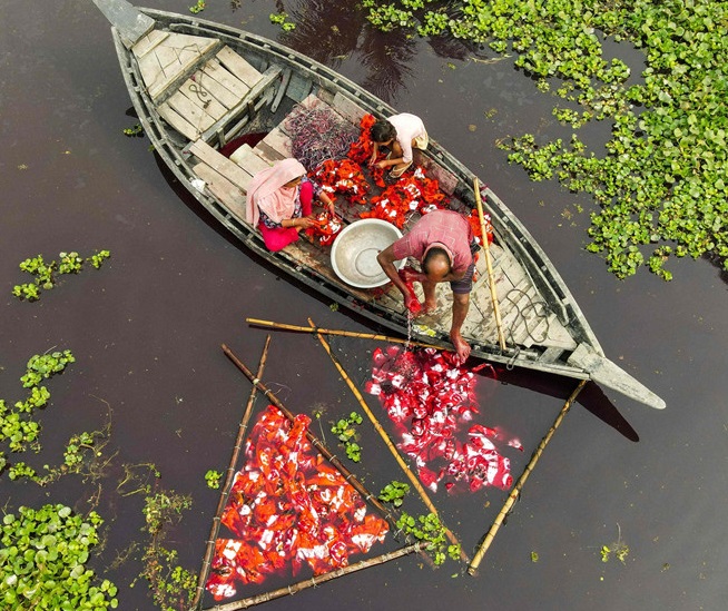 人民網(wǎng)訊 當(dāng)?shù)貢r(shí)間2021年1月10日,孟加拉國(guó)Araihazar,實(shí)拍印染廠織布晾曬過(guò)程。