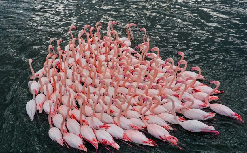 人民網(wǎng)訊 當(dāng)?shù)貢r(shí)間1月18日,土耳其伊茲密爾,成群結(jié)隊(duì)的火烈鳥在水中暢游。
