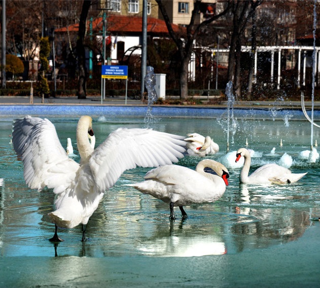 土耳其天鵝碎冰池中浮游--國際--人民網