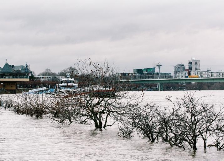 這是2月2日在德國(guó)科隆拍攝的水位上漲的萊茵河。新華社發(fā)(唐穎 攝)