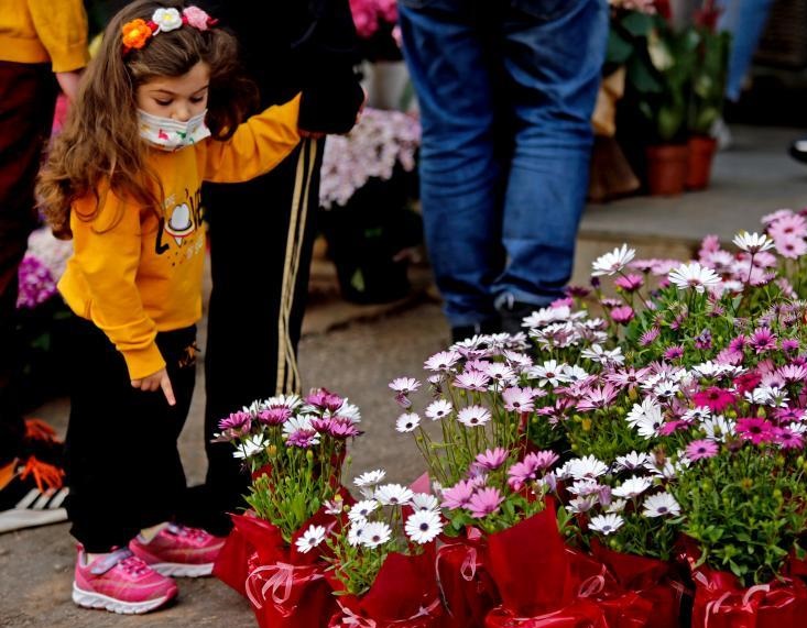3月20日,在黎巴嫩首都貝魯特,人們?cè)诨ǖ曩?gòu)買(mǎi)鮮花。
