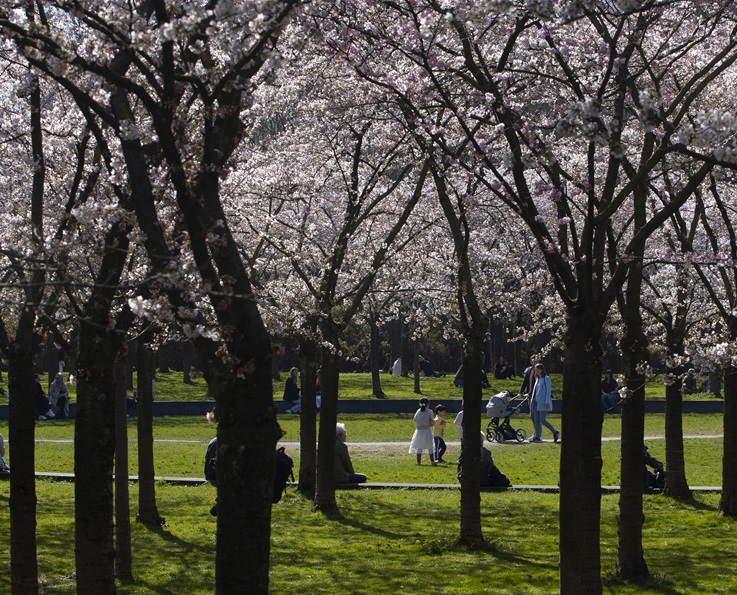 人民網(wǎng)訊 當?shù)貢r間3月29日,荷蘭阿姆斯特丹郊外的阿莫斯特爾芬,荷蘭櫻花綻放,人們外出踏春。