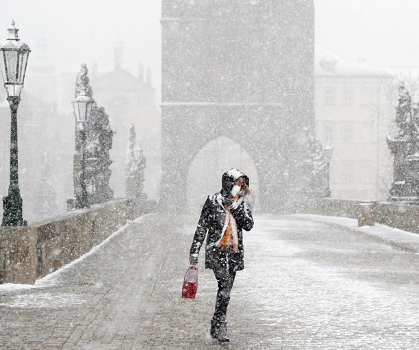 捷克首都布拉格迎暴風雪