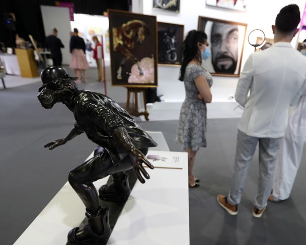當?shù)貢r間4月7日,迪拜,迪拜世界藝術博覽會舉行。此次藝術博覽會將一直持續(xù)至4月10日,展出超過2000件藝術作品。(圖片來源:東方IC)