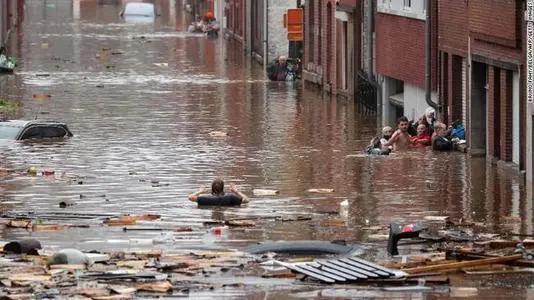 15日,比利時(shí)境內(nèi)多條河流出現(xiàn)洪峰,多地被淹,數(shù)千棟房屋受損或倒塌,部分鐵路運(yùn)輸中斷。