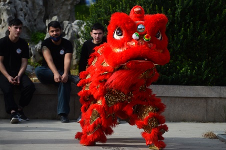 2月6日,在馬耳他桑塔露琪亞市的中國古典園林“靜園”,來自馬耳他龍龜武館的學(xué)員進(jìn)行舞獅表演。