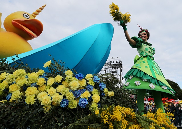 第137屆尼斯狂歡節(jié)于2月11日至27日舉行。在狂歡節(jié)“鮮花大戰(zhàn)”活動中,游行彩車被鮮花裝飾,花車上的表演者將鮮花拋向觀眾,場面十分壯觀。