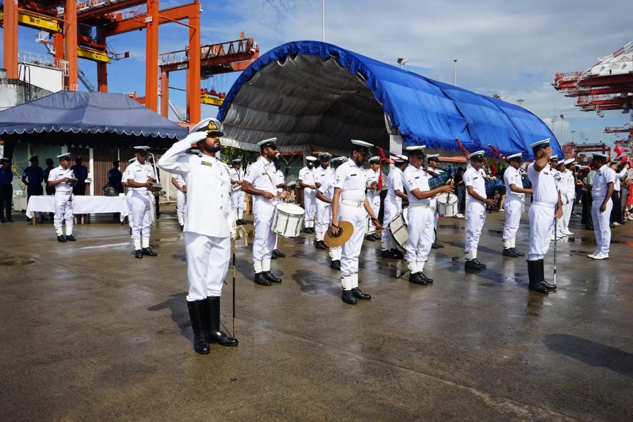 抵港當(dāng)天,斯方在碼頭舉行了歡迎儀式。斯方代表,中國駐斯里蘭卡大使館工作人員,以及華人華僑和中資機構(gòu)員工代表等在碼頭迎接。