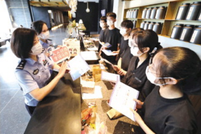 根據(jù)近期轄區(qū)詐騙案件發(fā)案特點,江蘇省宜興市公安局民警走進企業(yè)單位,開展涉企涉商防詐專題宣講,圍繞財務(wù)轉(zhuǎn)賬、貸款、理財投資、刷單、保健養(yǎng)老等多種類型的詐騙,結(jié)合案件事例等向企業(yè)員工講解如何防范識別、防范詐騙,進一步提升企業(yè)人員防詐騙意識。圖為民警在轄區(qū)民宿開展防詐宣傳。