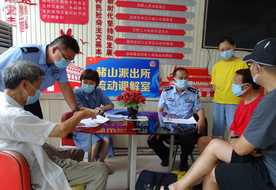 7月25日,安徽省蕪湖市公安局鏡湖分局赭山派出所“流動調(diào)解室”社區(qū)民警和調(diào)解員在轄區(qū)紅梅小區(qū)現(xiàn)場進行矛盾糾紛調(diào)解工作。夏季治安打擊整治“百日行動”開展以來,赭山派出所警務(wù)前移,踐行“楓橋經(jīng)驗”,創(chuàng)新推行“流動調(diào)解室”工作,吸納社區(qū)、司法等社會力量,堅持“哪里有矛盾糾紛,警民聯(lián)調(diào)就流動到哪里,服務(wù)就延伸到哪里”的工作機制,及時普法并化解糾紛。
