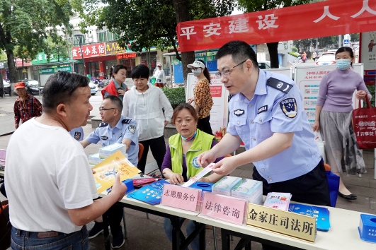 5月30日,安徽省馬鞍山市花山區(qū)金家莊街道組織開展以“平安建設(shè) 人人參與”為主題的廣場(chǎng)宣傳活動(dòng)。圖為金家莊司法所工作人員正在接受群眾咨詢。法治日?qǐng)?bào)全媒體通訊員 胡智慧 汪華 攝