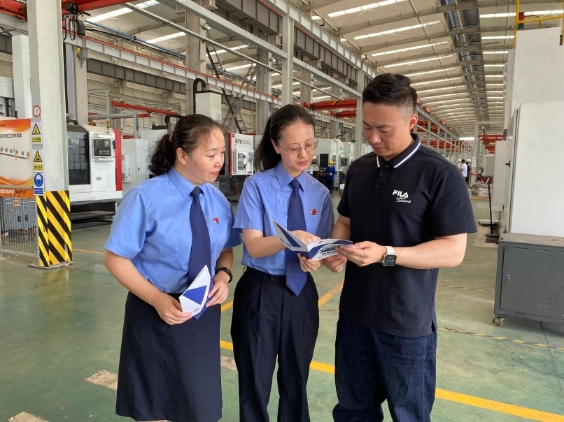 6月16日,江蘇省鹽城市亭湖區(qū)人民檢察院第一檢察部檢察官走進(jìn)當(dāng)?shù)孛駹I(yíng)企業(yè),深入了解企業(yè)法律需求。 吳青穎 攝