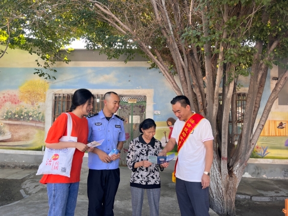 8月4日,新疆生產(chǎn)建設(shè)兵團(tuán)第二師鐵門關(guān)市司法局開展入戶普法活動,向群眾宣講民法典、法律援助法等法律知識,解答群眾常見的法律問題。圖為律師正在向群眾普法。 邢雅男 攝