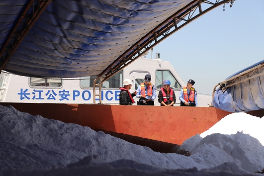 5月16日,長(zhǎng)江航運(yùn)公安局南通分局通州派出所民警到轄區(qū)重點(diǎn)水域開(kāi)展巡邏檢查。法治日?qǐng)?bào)全媒體通訊員 高彬 攝