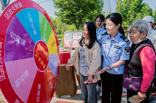 5月17日,安徽省含山縣司法局聯(lián)合縣法學(xué)會(huì)、縣公安局等單位在環(huán)峰鎮(zhèn)褒禪社區(qū)小廣場(chǎng)舉辦“‘典’亮生活 與法同行”法治游園活動(dòng),為群眾提供法律咨詢(xún)、法治宣傳等服務(wù)。法治日?qǐng)?bào)全媒體通訊員 歐宗濤 攝