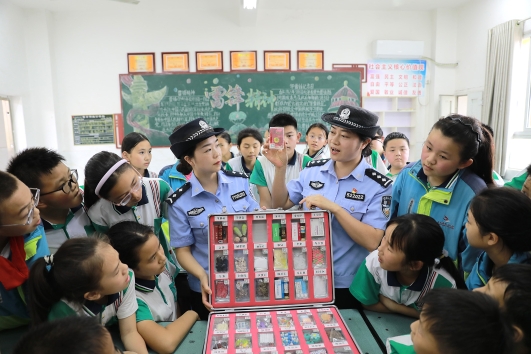 6月4日,貴州省赤水市公安局組織民警走進(jìn)轄區(qū)學(xué)校,通過講解禁毒知識等,引導(dǎo)學(xué)生珍愛生命、遠(yuǎn)離毒品。法治日報全媒體通訊員 王長育 攝