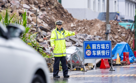 近日,湖北省長(zhǎng)陽(yáng)土家族自治縣公安局高家堰派出所民警冒雨在轄區(qū)道路塌方維修路段執(zhí)勤,提醒過往車輛減速慢行,確保通行安全。法治日?qǐng)?bào)全媒體記者 劉歡 通訊員 胡燦 攝