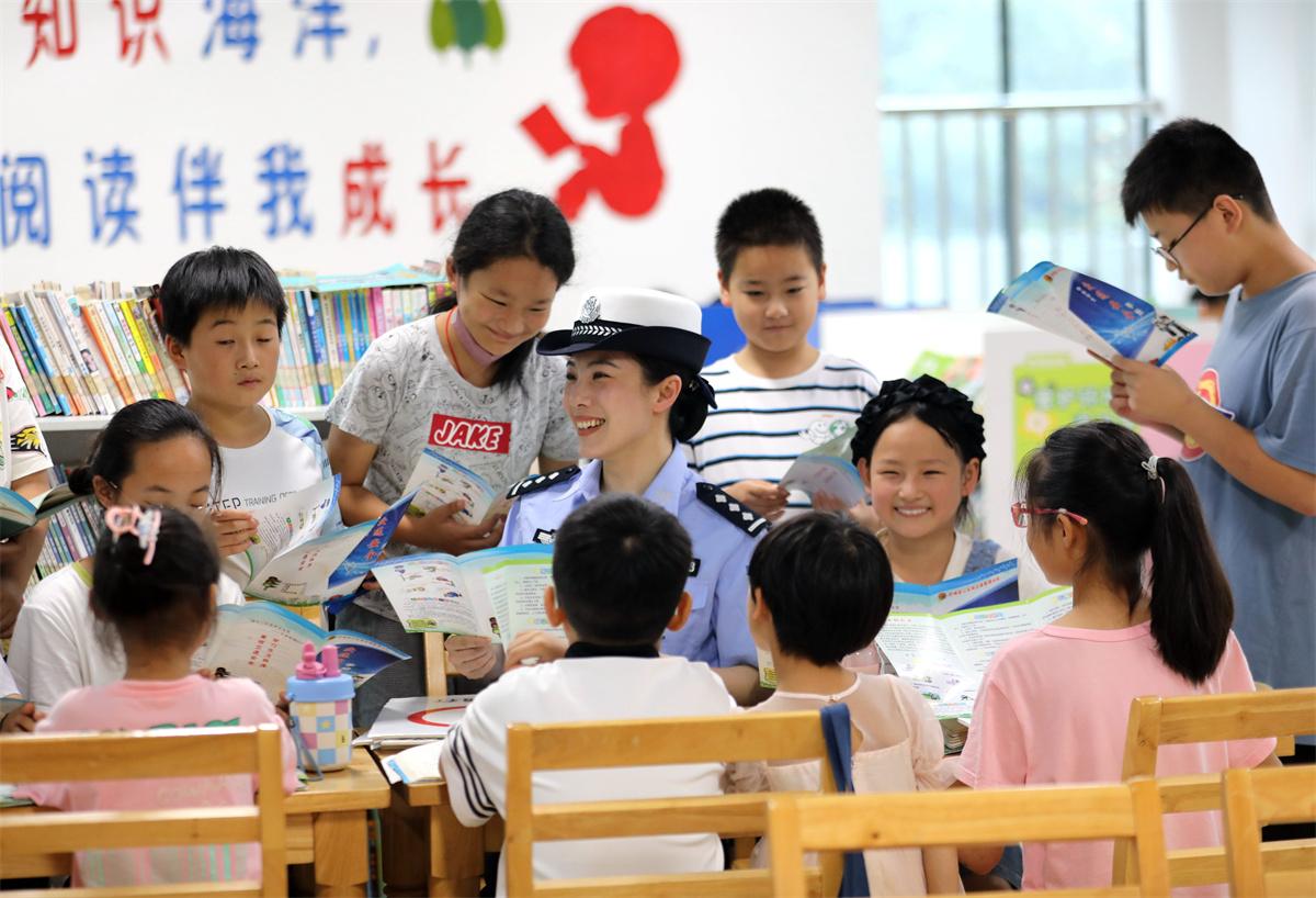 7月13日,安徽省舒城縣公安局交管大隊(duì)聯(lián)合城中派出所民警走進(jìn)縣圖書館,向在此閱讀、休閑的市民宣傳交通安全知識,讓安全出行知識走近市民、貼近生活。