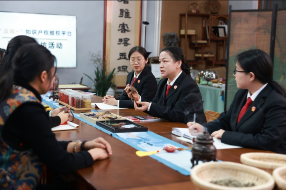 2月7日,山東省濱州市中級(jí)人民法院法官向手工藝人面對(duì)面了解在非遺文創(chuàng)產(chǎn)品制作方面存在的法律問(wèn)題,并結(jié)合非遺類(lèi)案件審理情況,向市工商聯(lián)等部門(mén)發(fā)出司法建議。 王鐘瑤 攝