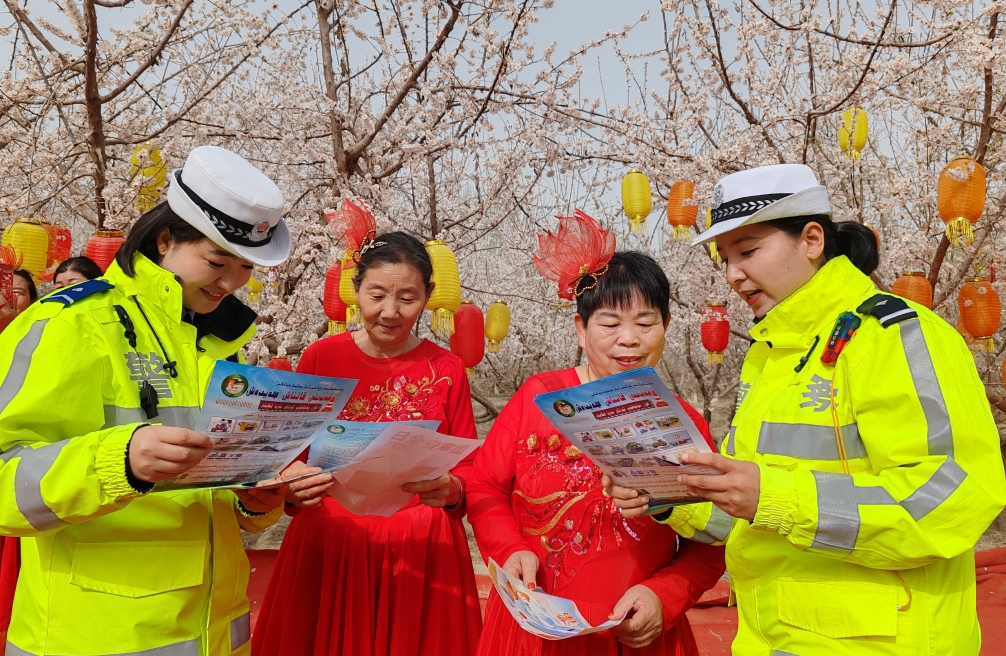 4月5日,新疆沙雅縣公安局創(chuàng)新普法形式,組織民警走進杏花園,開展“杏福楓警”花式普法宣傳活動,將法治宣傳與春日美景相結(jié)合,讓群眾在賞花踏青的同時輕松學法、快樂用法。