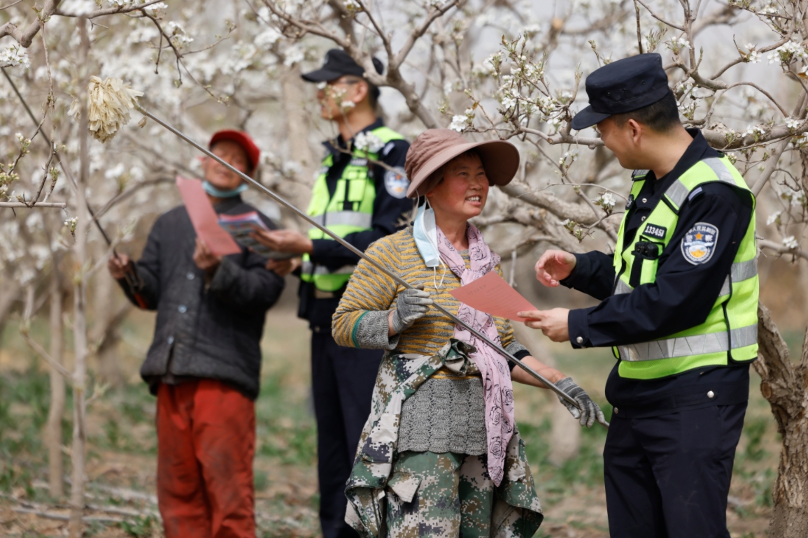 新疆庫爾勒市梨花盛開時(shí)節(jié),為進(jìn)一步增強(qiáng)轄區(qū)鐵路沿線居民對鐵路安全知識(shí)的了解,提高居民的愛路護(hù)路意識(shí)和自我保護(hù)能力,4月14日,庫爾勒鐵路公安處庫爾勒西站派出所民警在轄區(qū)香梨種植園廣泛開展鐵路安全知識(shí)宣傳。民警走村入戶,采用向村民及外來務(wù)工人員發(fā)放鐵路護(hù)路宣傳資料、現(xiàn)場講授等方式講解鐵路安全知識(shí),構(gòu)建良好的線路安全環(huán)境。