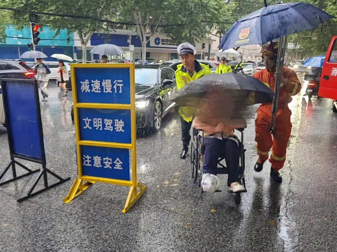 幫考生拉開車門,為忘帶雨具的考生撐傘,固定考生被風(fēng)吹翻的雨衣……暴雨中,劉明智和戰(zhàn)友們?nèi)珕T上陣,織密應(yīng)急服務(wù)網(wǎng)絡(luò),考點(diǎn)周圍涌動著緊張而溫暖的“護(hù)考潮”。